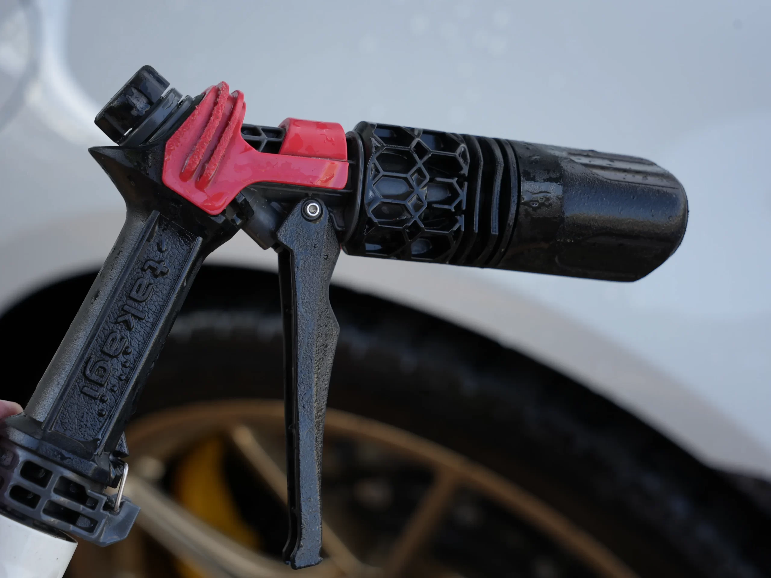 シャワーやストレートなどのモードが選べる一般的な散水ノズルでOK。「洗車用」などと宣伝された特殊ノズルでなくて構いません。