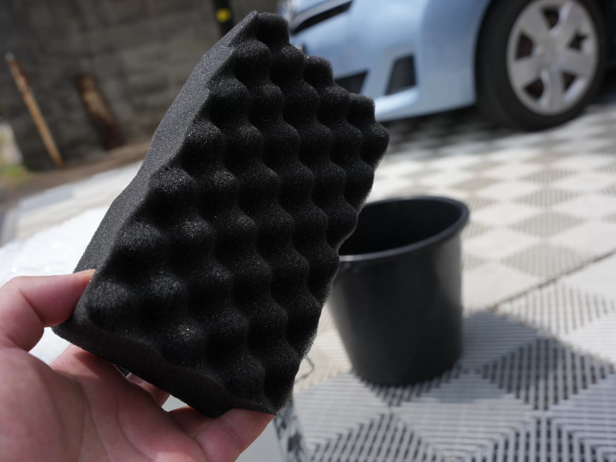 オススメはウレタンスポンジ。プロファイル加工された表面が凹凸・波型カットとなっているものが特にオススメです。いわゆる「普通の洗車スポンジ」です。