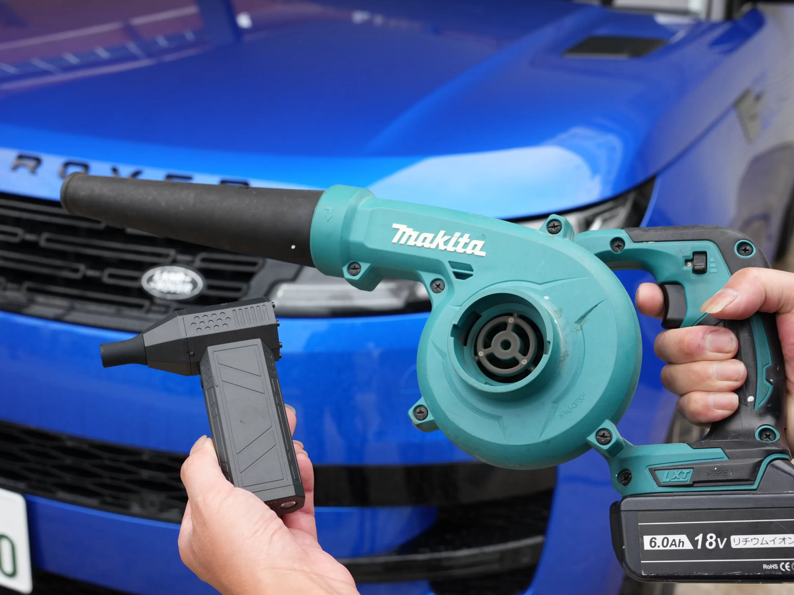ブロワーは、洗車のみに使う場合は小型で充電式(バッテリー式)のものでOK。逆にAC電源(コード)式や中・大型のブロワーだと、洗車の時に使うのが億劫になってきてしまうので、取り回しの良いモノを洗車のたびに使うようにできると良いでしょう。